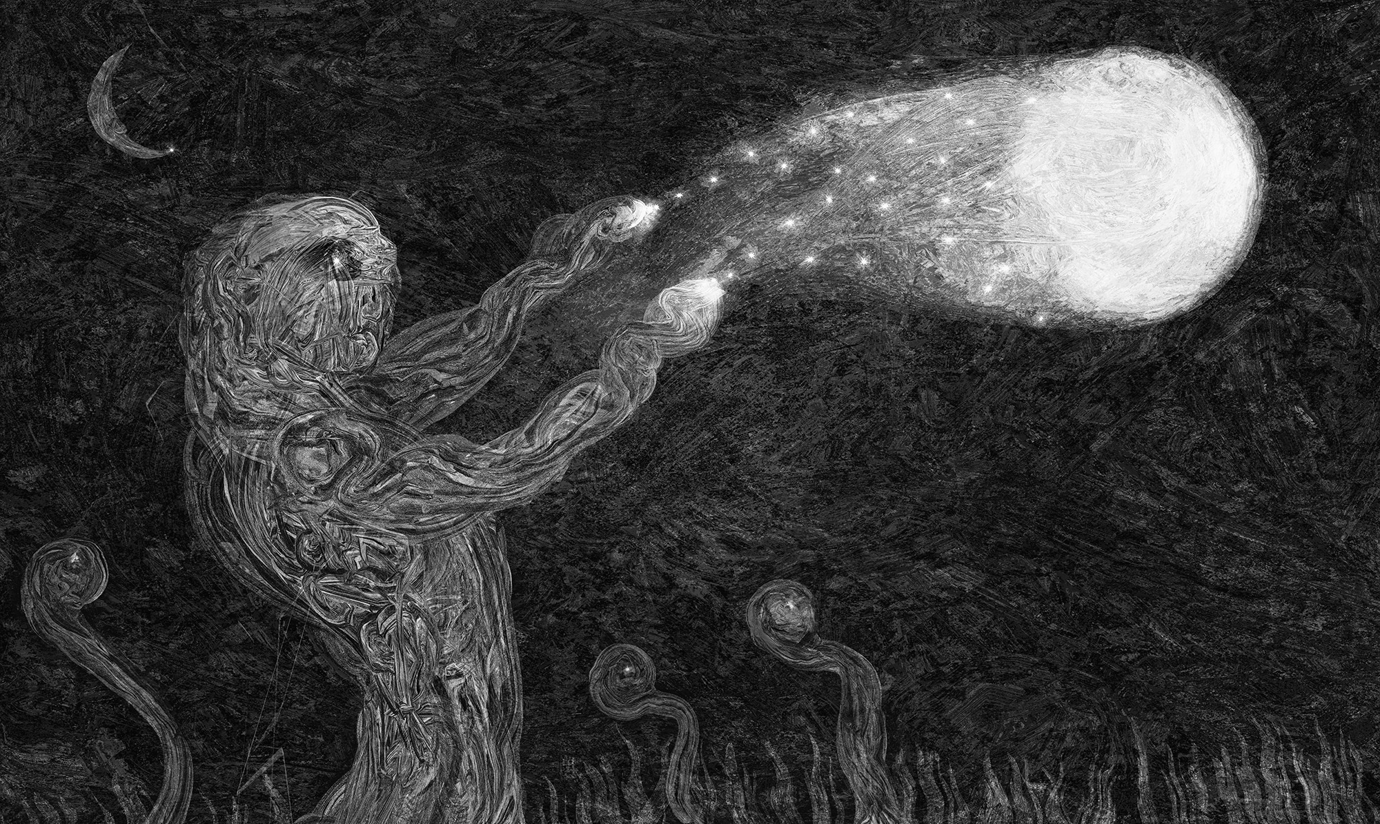 Литература здесь — не источник сюжетов, а среда, из которой рождаются образы и ассоциации. Мария Завьялова в серии «Осколки ужаса» обращается к одноимённому сборнику рассказов японского мастера манги Дзюндзи Ито. Работая с темой аффекта, она проявляет страх и тревогу через искажения формы и пространства. Александр Завьялов создаёт Вселенную непризнанной столицы поэтов, о прошлом и настоящем которой можно узнать из фотокниги «Харитонутск. Город-состояние» и серии фотографий «Легенда о Колыбели Слов».
