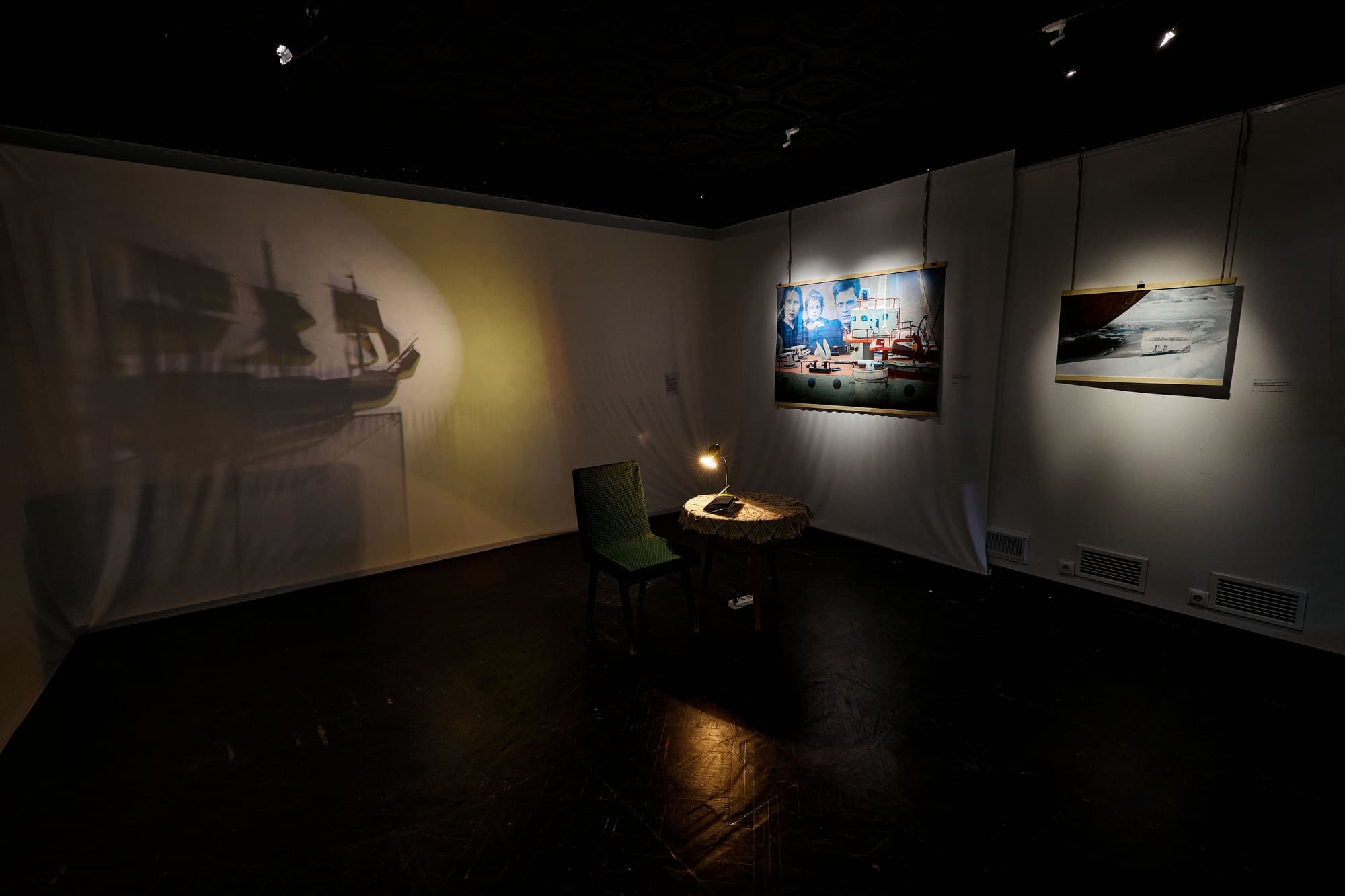 В центре выставки – практика фотографа Лилии Файзулловой. Она родилась и выросла в Толевом, уехала после окончания университета, но с 2023 года снова и снова возвращается в родной поселок в художественных работах: в инсталляции о расселяемом общежитии, в зине о дворовых играх и – в рамках данной выставки – в проекте о локальной практике судомоделирования. Лилия работает с субъективным опытом полевыми методами: общается с местными жителями, обращается к школьному музею и изучает пограничные пространства, дрейфуя по гаражам и скованной льдом «Самарке». Для художницы Толевый – не «периферия», а отдельная вселенная с собственными правилами и географией.