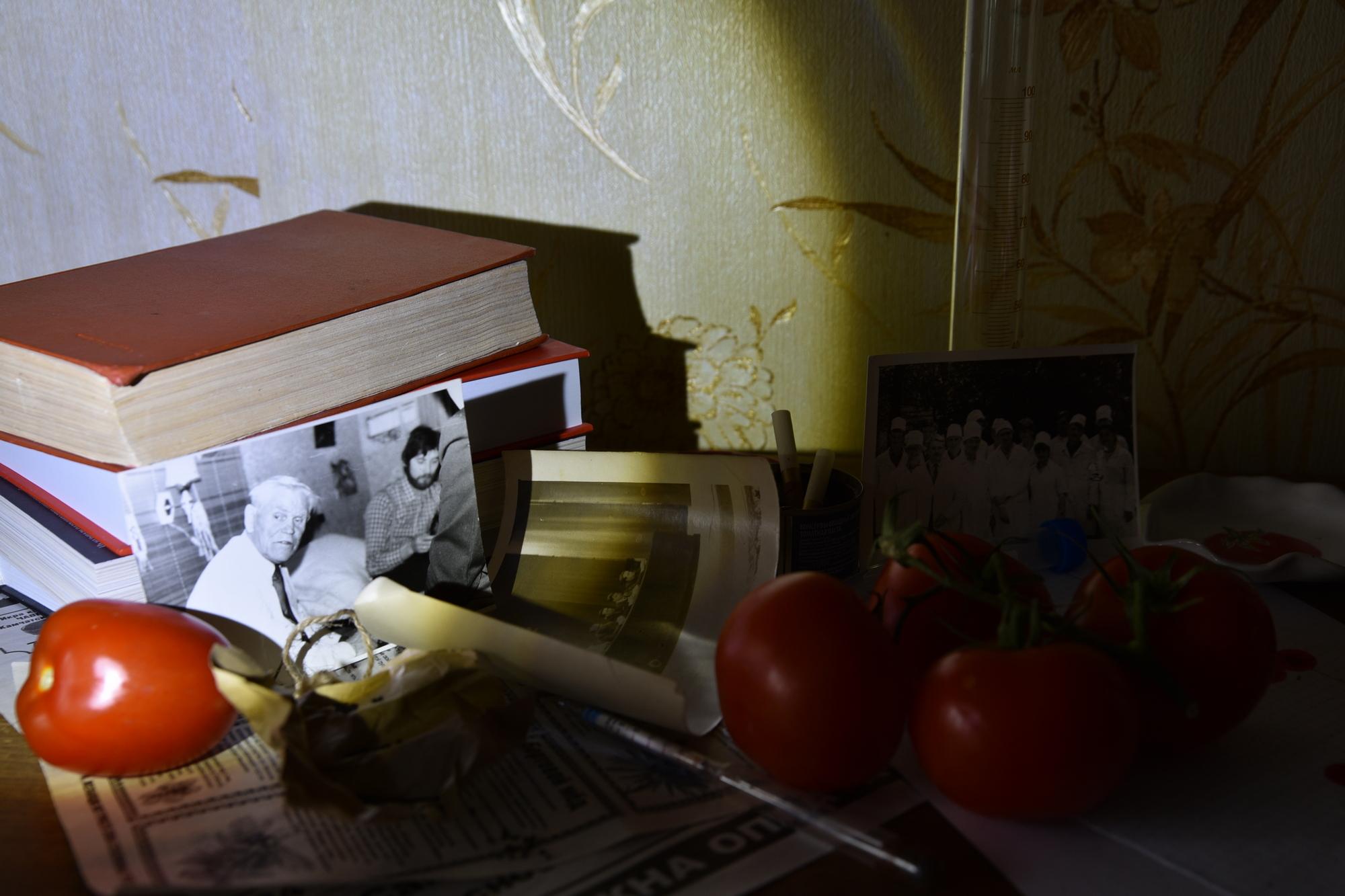 Образцы томатов в кабинете П. А. Слёнова, Сызрань, 1998. Фото предоставлено Управлением архивной службы Самарской области